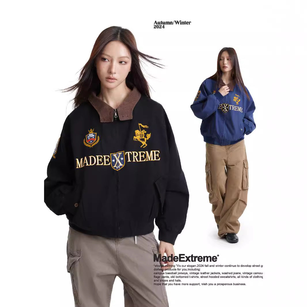 Vintage Street Style Detroit Embroidered Jacket for Men